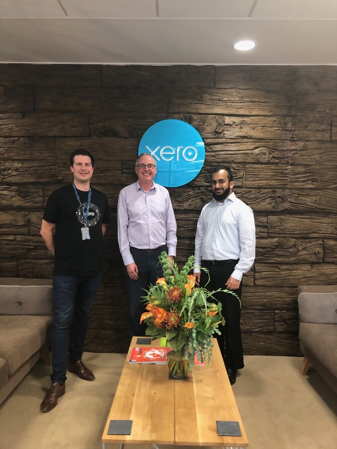 Brian and Zia with Alastair Gardner from Xero at their Milton Keynes HQ